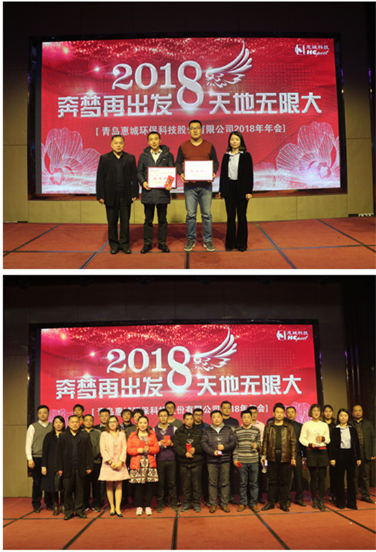 2月9日,青島惠城環(huán)保科技股份有限公司2018年度主題為“奔?jí)粼俪霭l(fā) 天地?zé)o限大”的總結(jié)表彰暨新春聯(lián)歡會(huì)在青島康大豪生大酒店隆重召開。