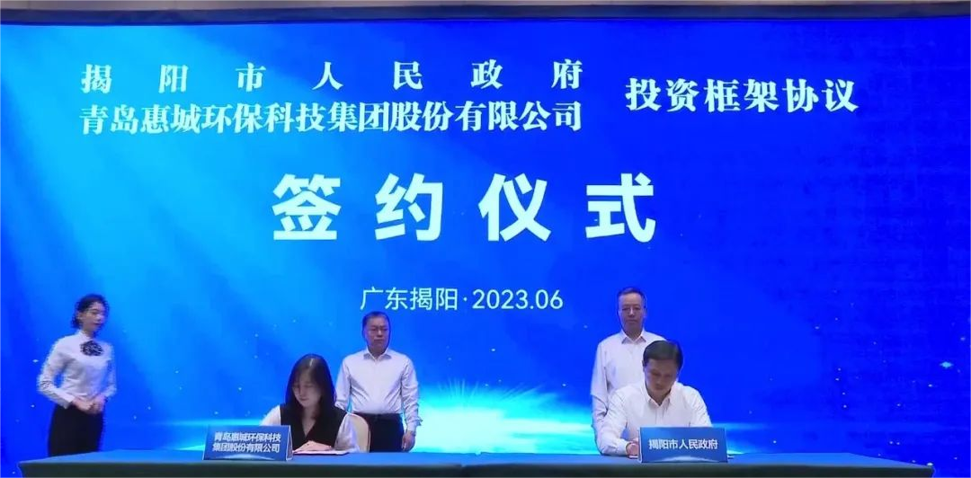 6月18日,青島惠城環(huán)保科技集團股份有限公司與揭陽市人民政府在揭陽市區(qū)簽署投資框架協(xié)議,共同促進石化產業(yè)綠色低碳循環(huán)利用,助推揭陽經濟高質量發(fā)展。揭陽市市委副書記、市長支光南,惠城環(huán)保創(chuàng)始人、首席技術官張新功出席簽約儀式并上臺鑒簽。