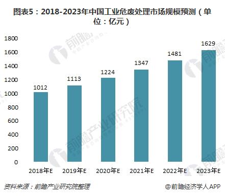 隨著工業危險廢物的增加,國家會增加危廢市場投資,同時,該行業的企業規模會逐漸變大,兼并收購增加。預計到2023年,工業危廢處理市場規模將達到1629億元左右,2018年至2023年復合增長率為10%。