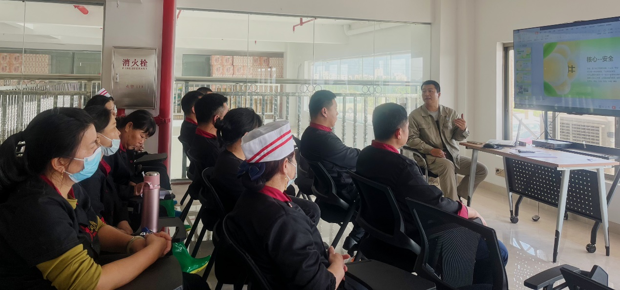 隨后,HSE管理部安全員朱宏杰于職工書(shū)屋對(duì)廚房工作人員進(jìn)行安全教育,從廚房危險(xiǎn)源辨識(shí)、事故預(yù)防、設(shè)備操作等方面詳細(xì)地進(jìn)行講解,他強(qiáng)調(diào):“大家一定要重視電、火、器具的使用安全,注意安全對(duì)自己負(fù)責(zé),也是對(duì)他人負(fù)責(zé)。在廚房無(wú)論進(jìn)行什么工作都需要嚴(yán)肅認(rèn)真,思想集中,比如在油鍋加熱過(guò)程中不可離開(kāi),在斬切食物時(shí)不得與他人交談,養(yǎng)成良好的習(xí)慣,確保自己和他人的安全。